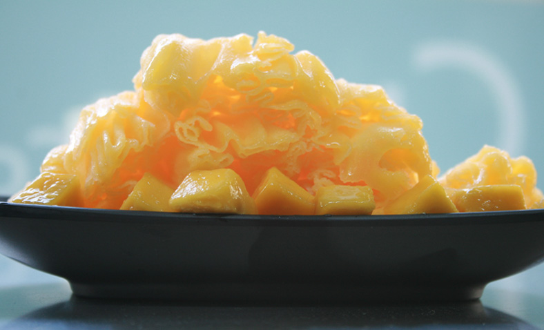 얼음결정의 결대로 빙삭하기 때문에 부드러운 식감의 빙질 구현가능